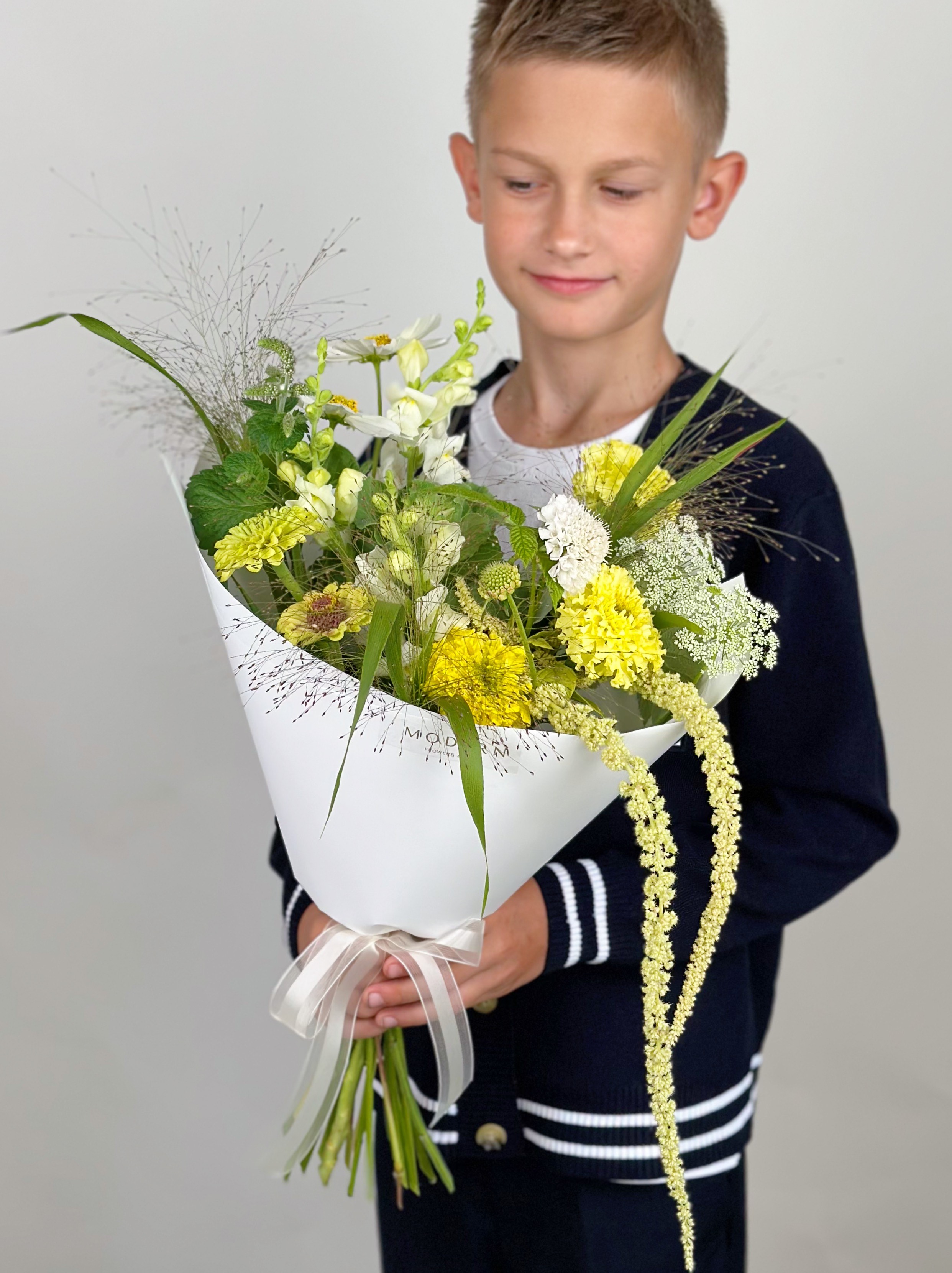 —БУКЕТ ИЗ ФЕРМЕРСКИХ ЦВЕТОВ С КОСМЕЕЙ И АМАРАНТОМ