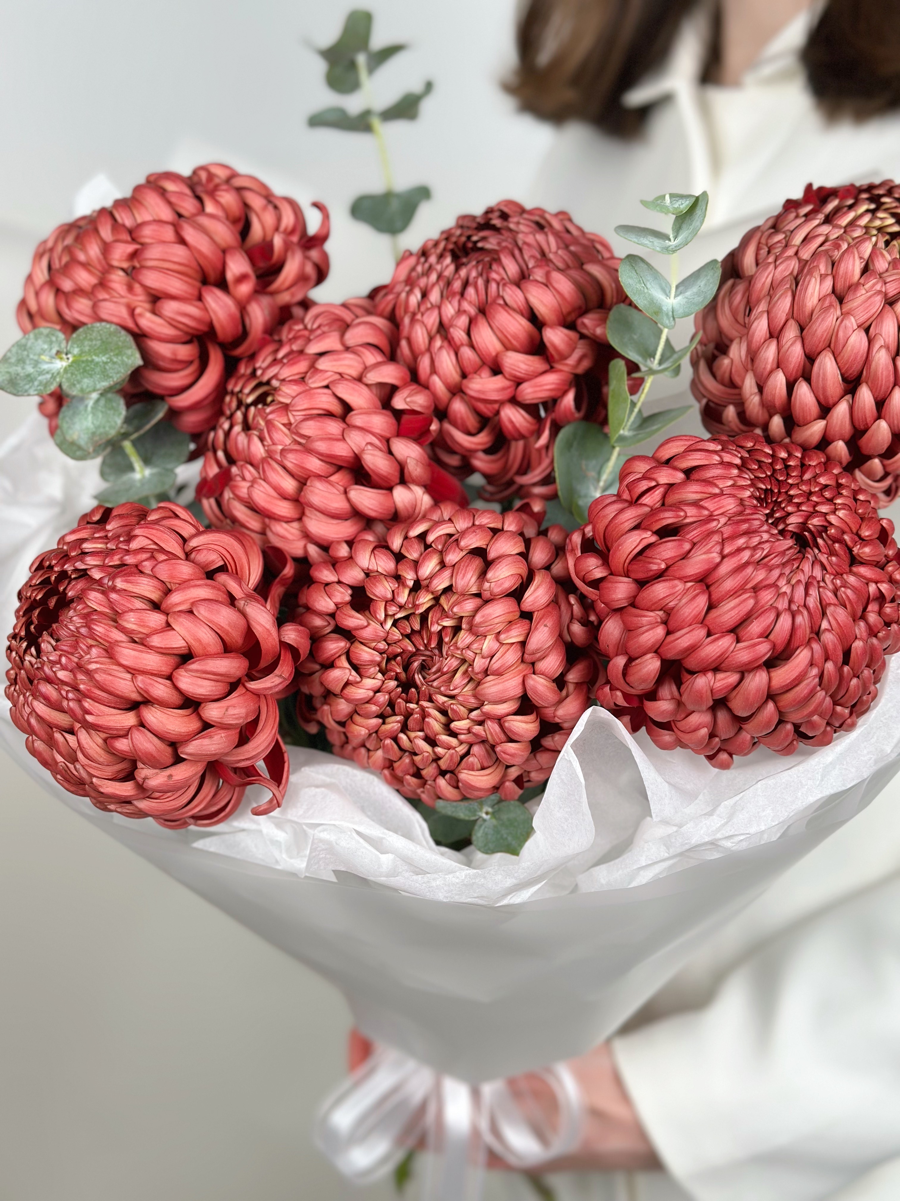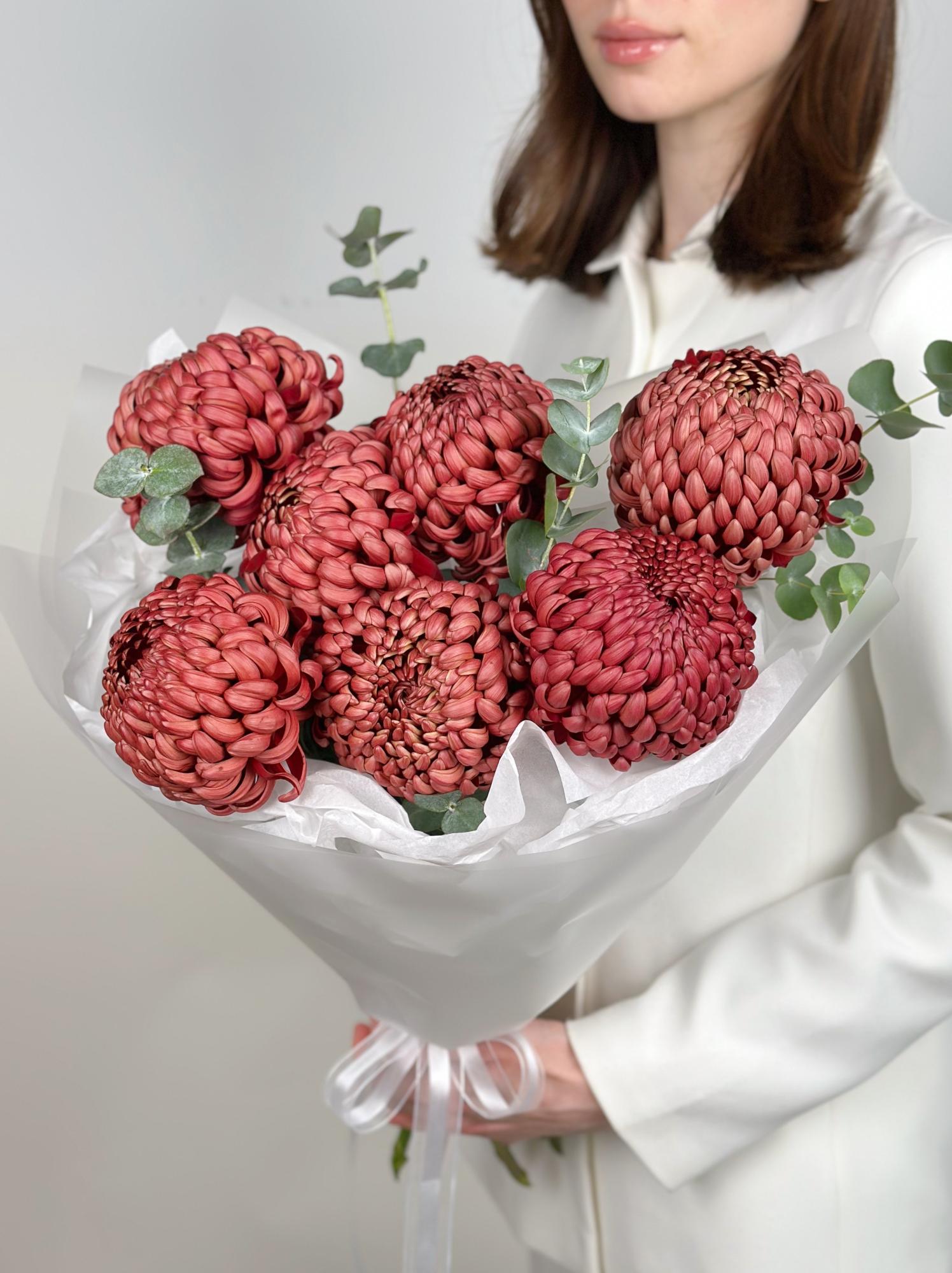 БУКЕТ С ХРИЗАНТЕМОЙ И ЭВКАЛИПТОМ