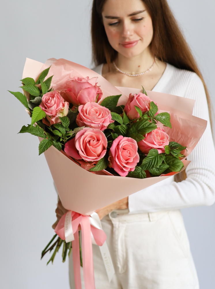 БУКЕТ 9 ФРАНЦУЗСКИХ РОЗА PINK MONDIAL