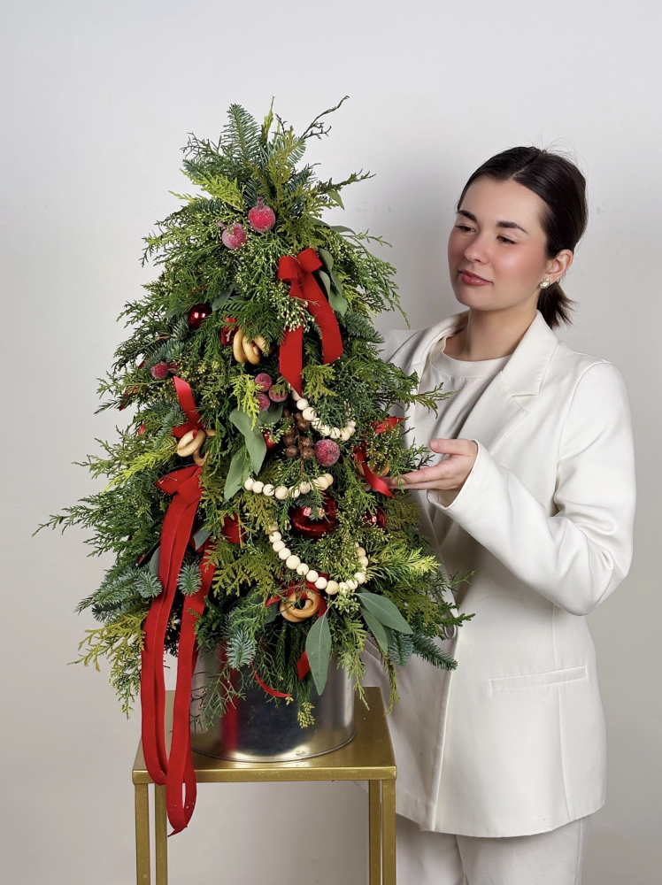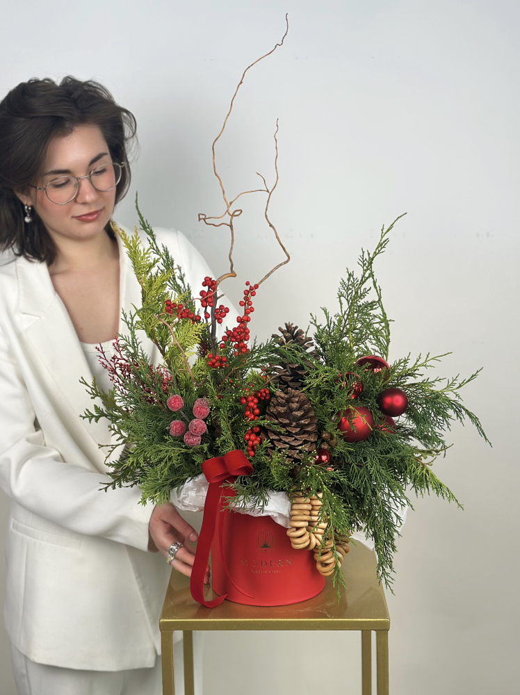 КОМПОЗИЦИЯ ИЗ ХВОИ И ИЛЕКСА В РУССКОМ СТИЛЕ