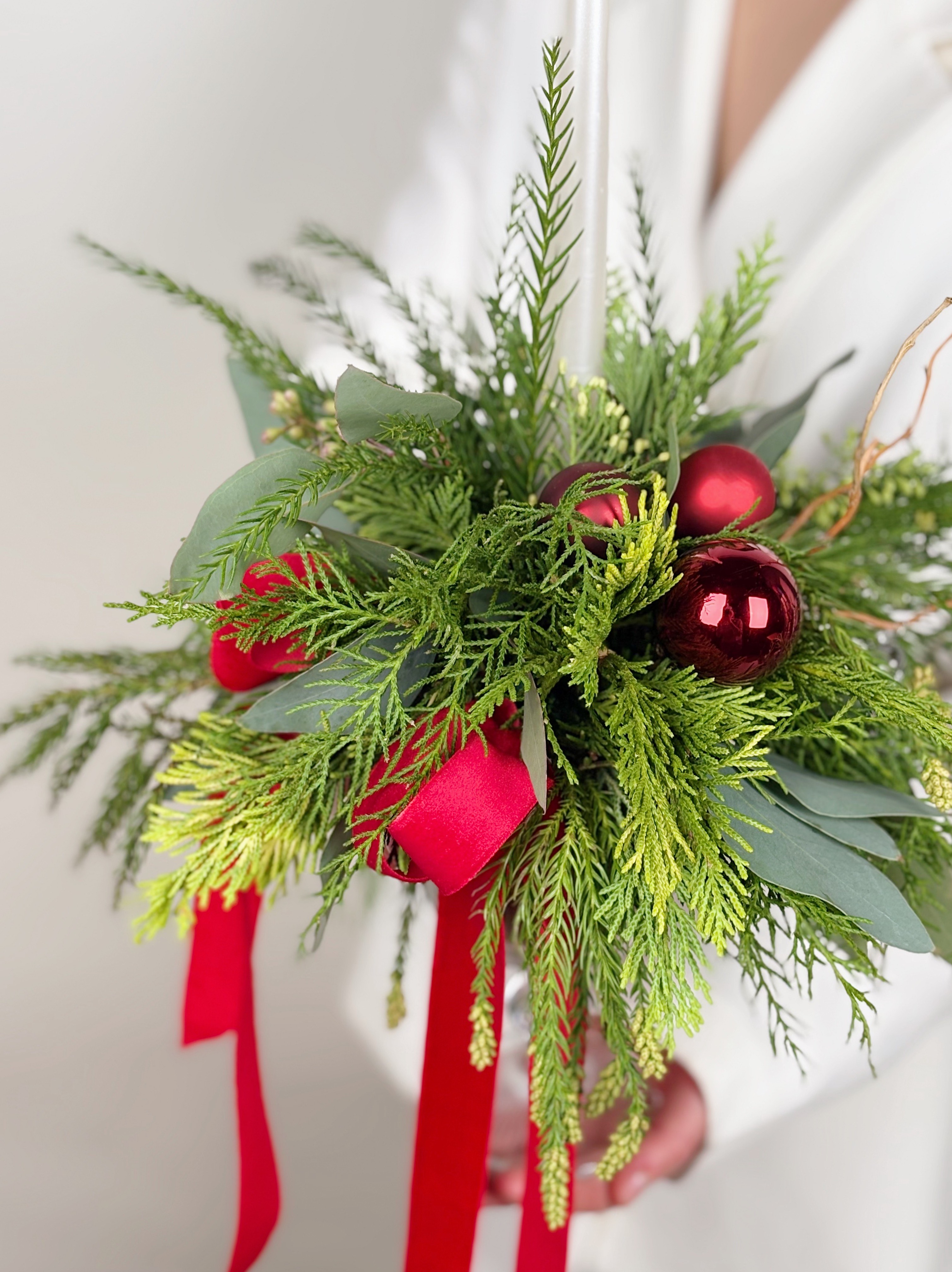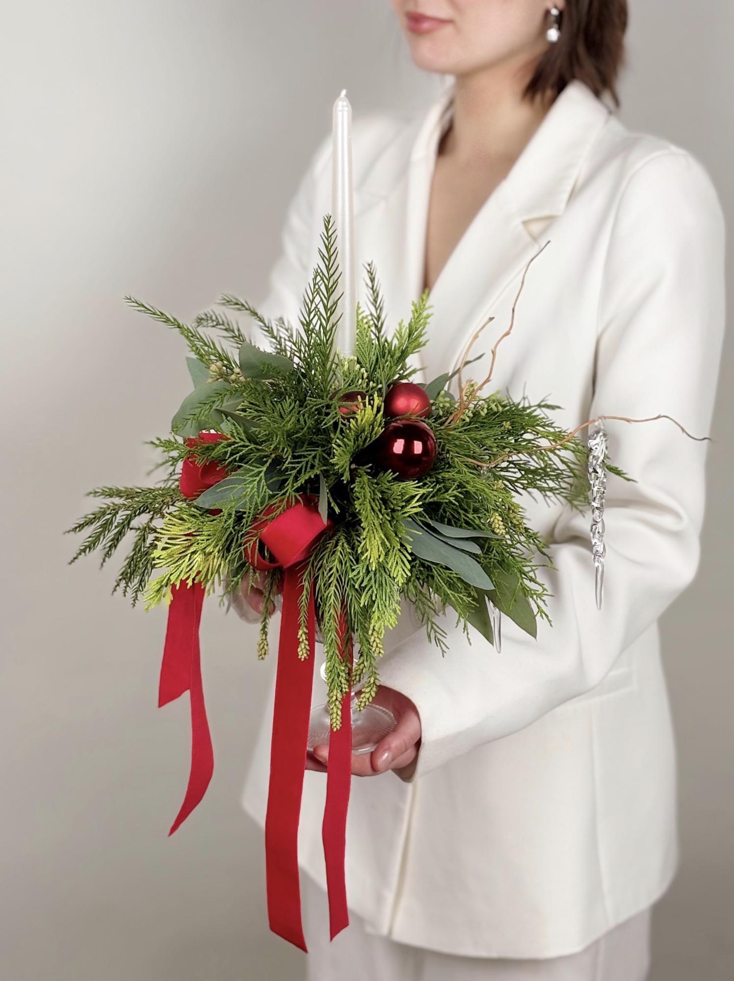 ХВОЯ В БОКАЛЕ СО СВЕЧЕЙ В КРАСНОМ ОТТЕНКЕ