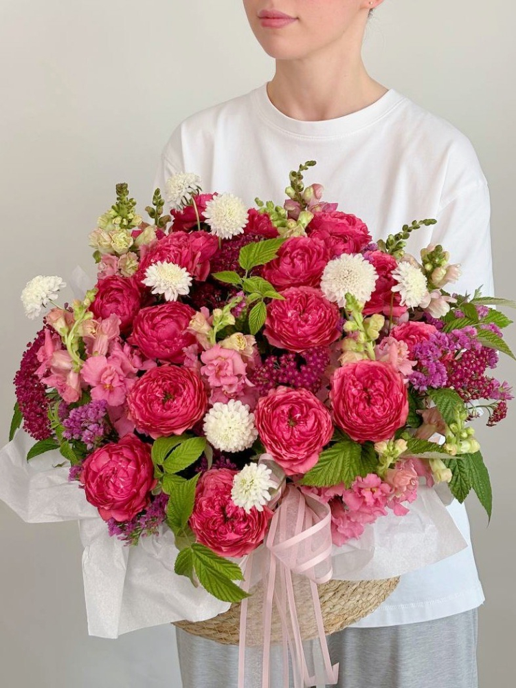 В фирменных композициях - букетах с четко выверенной геометрией - флористы используют не только привычные широкодоступные сорта, но и выращенные на собственной ферме Modern Flowers & Farm сезонные цветы.