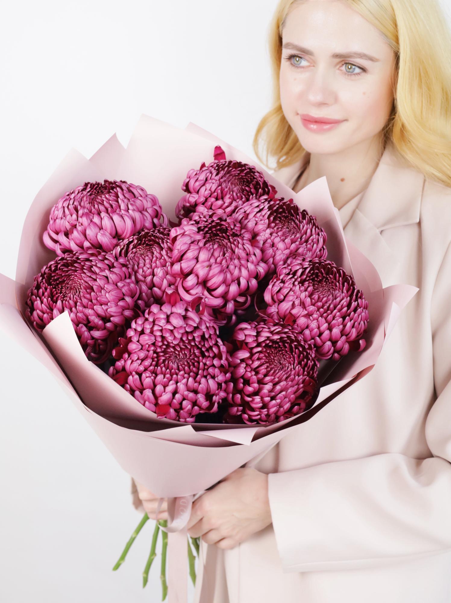 КРУГЛЫЙ БУКЕТ ИЗ ХРИЗАНТЕМЫ БИГУДИ 9 ШТ
