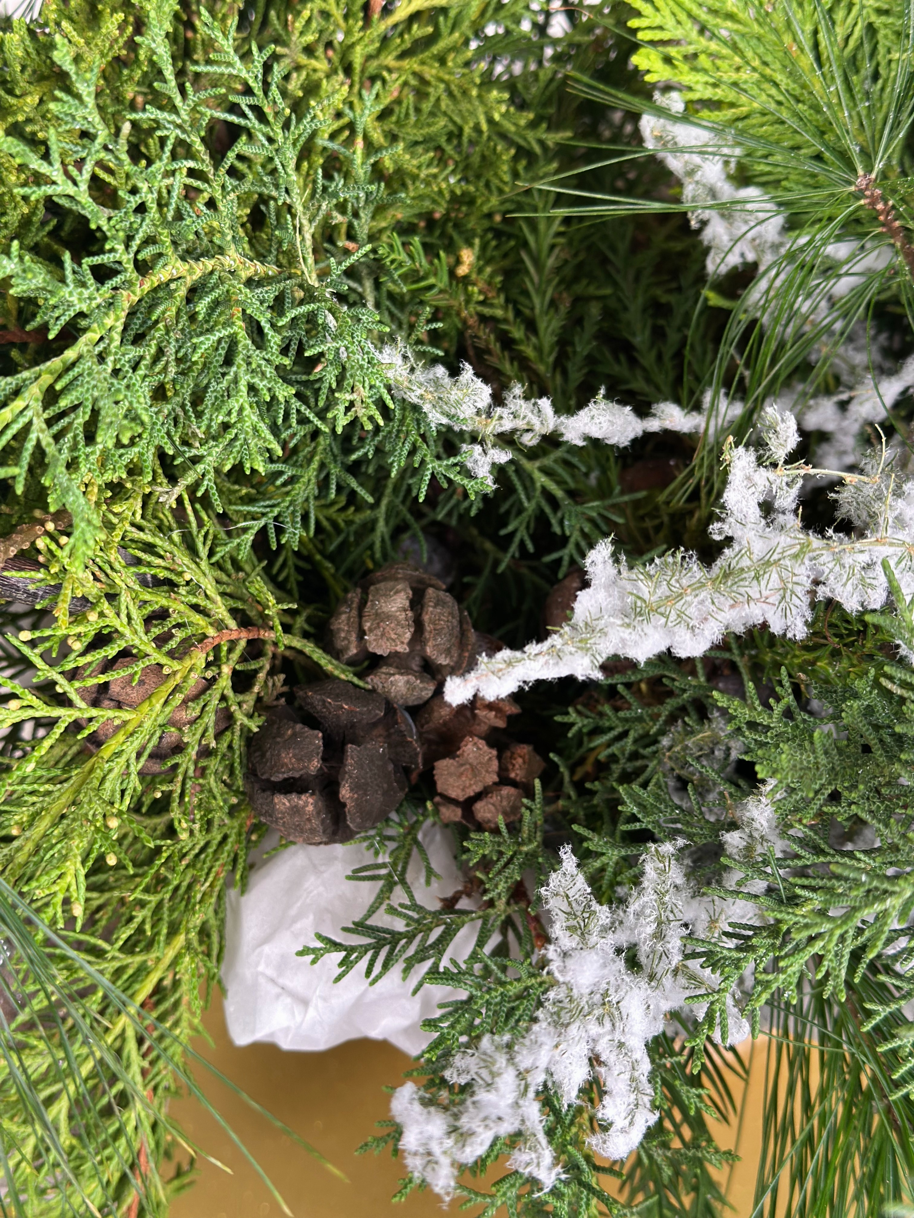 —МИКС ХВОИ И ЗАСНЕЖЕННОГО АСПАРАГУСА В КОРЗИНЕ С ДЕКОРОМ