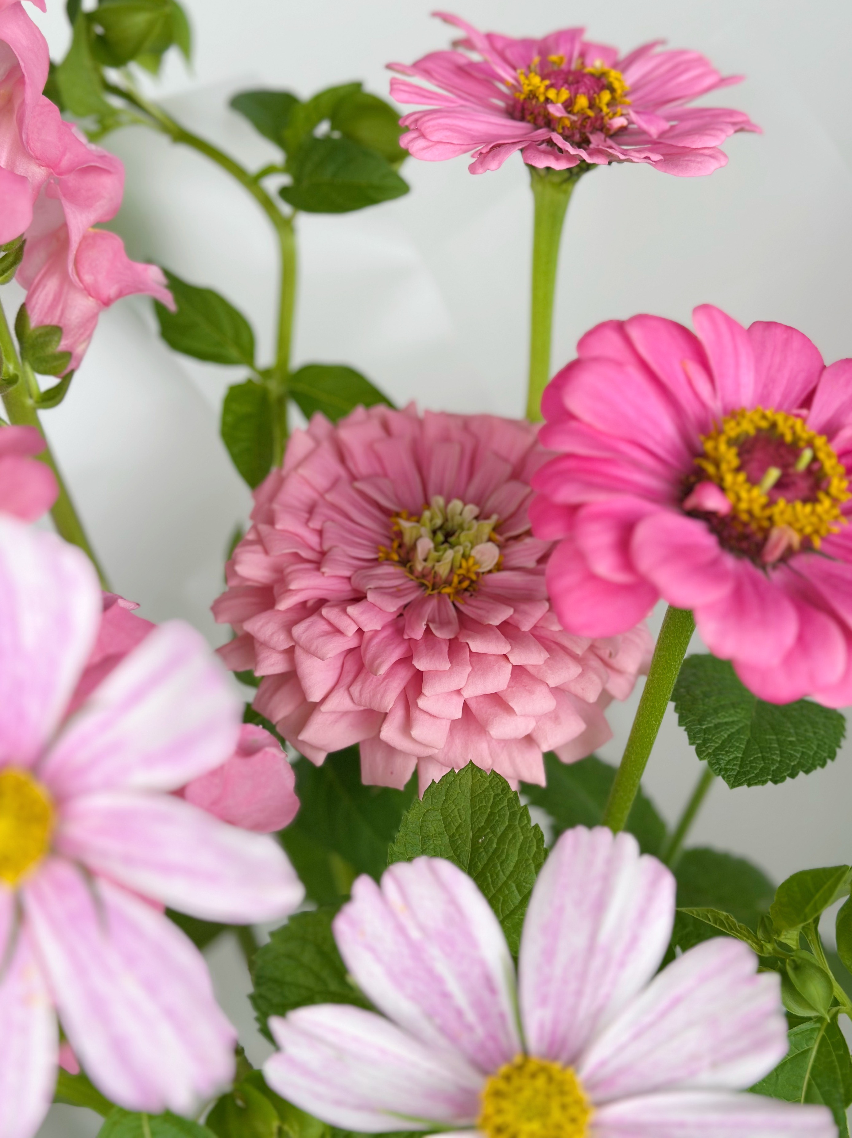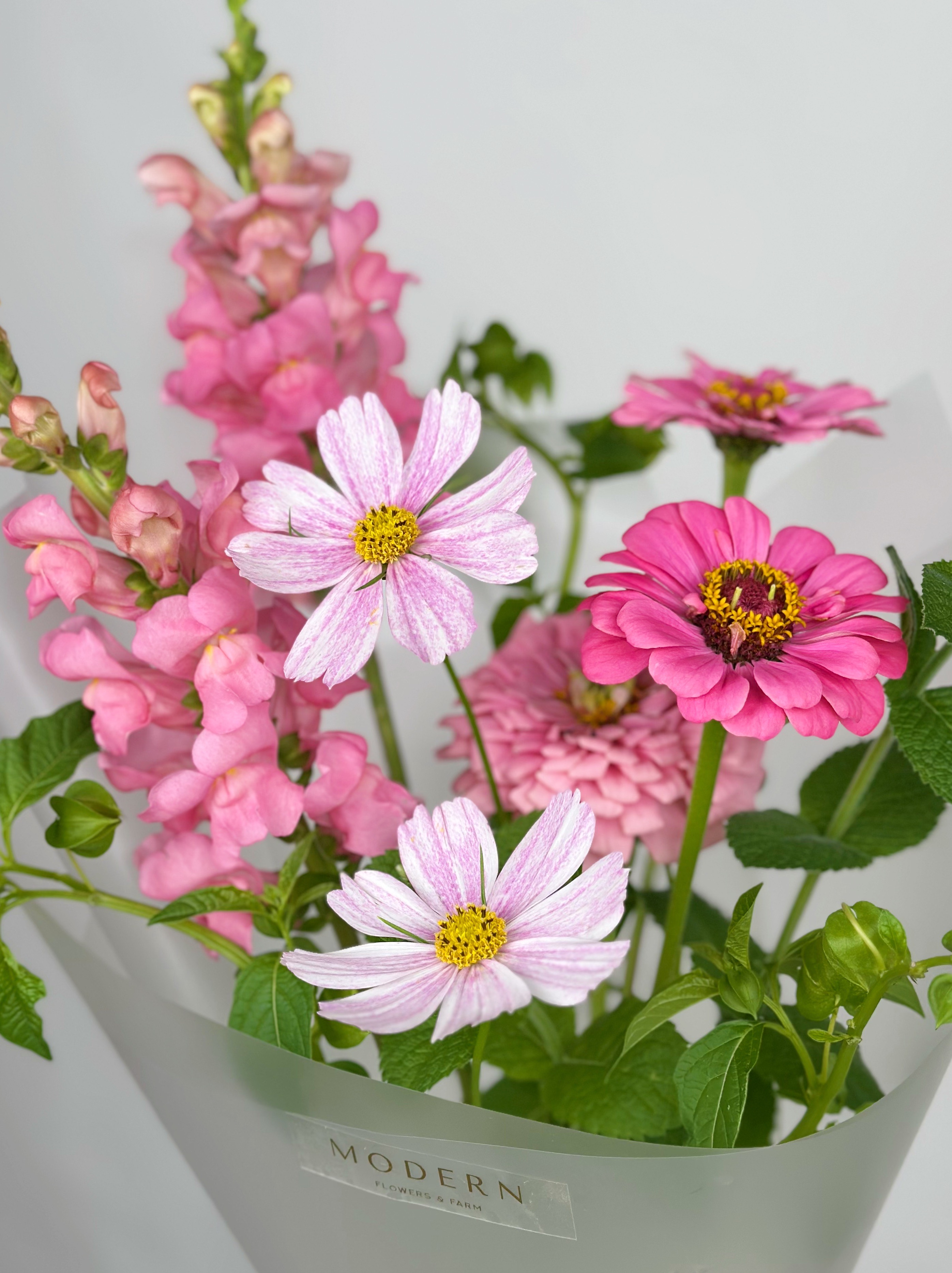 НЕЖНЫЙ БУКЕТ С ЦИННИЕЙ И КОСМЕЕЙ