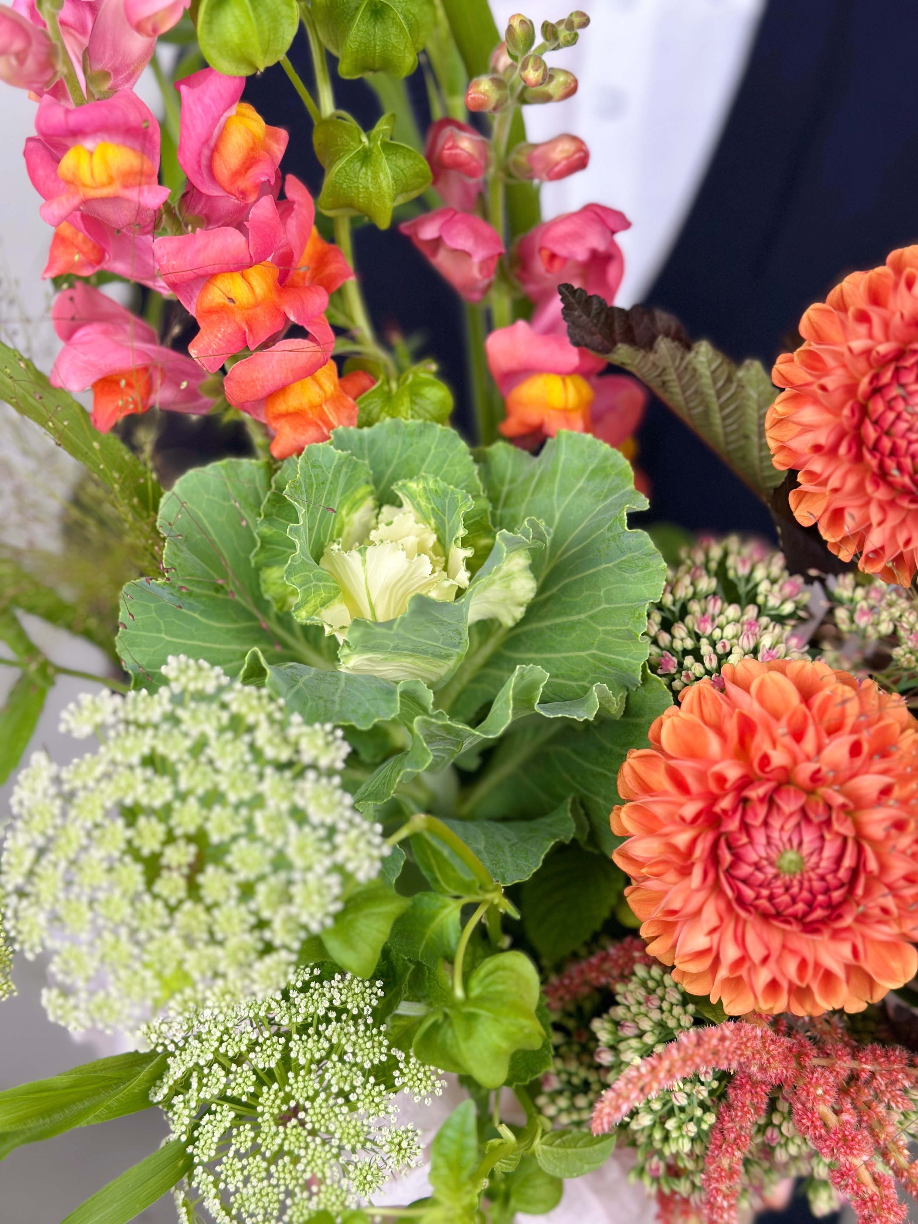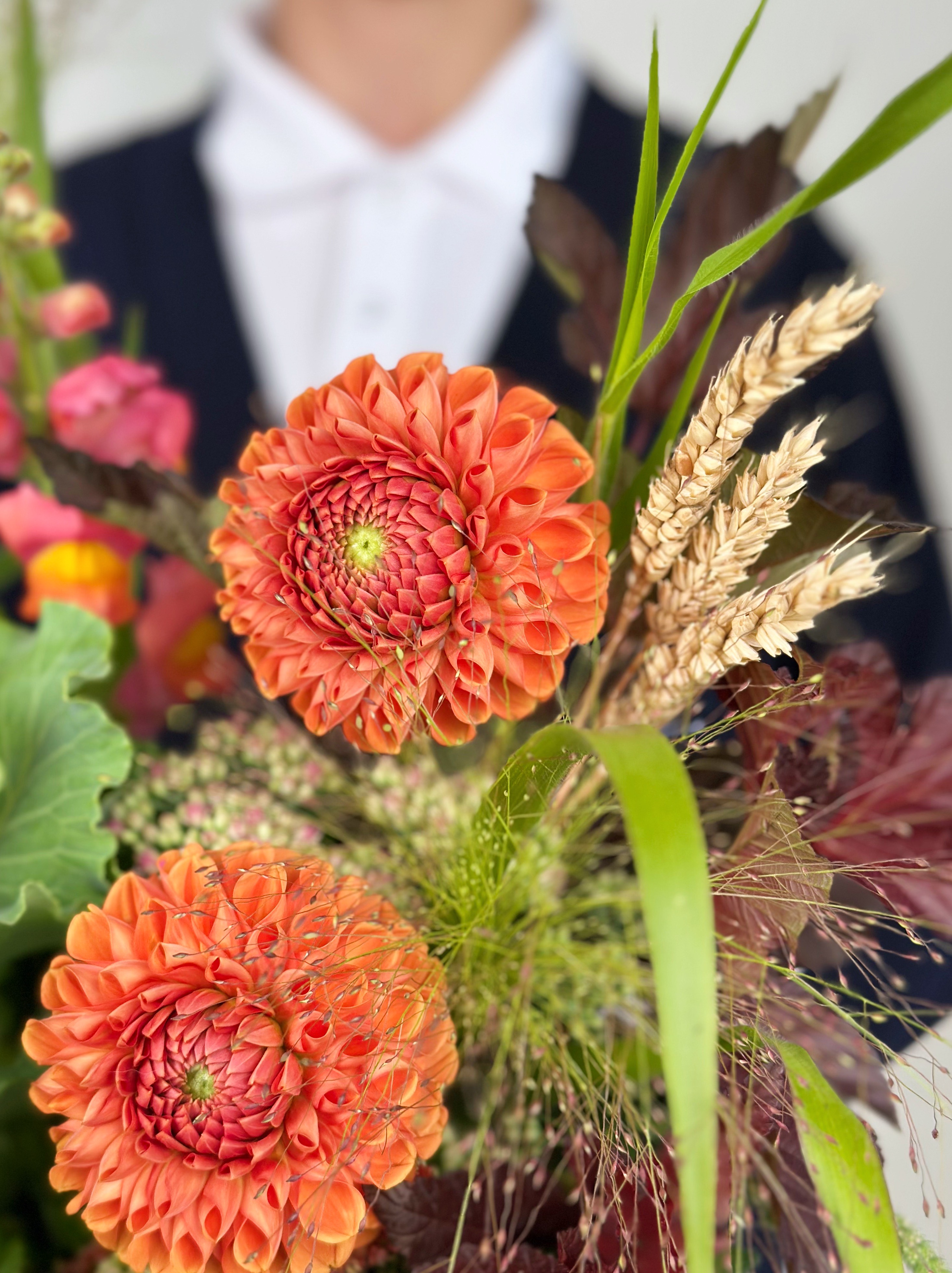 —ОСЕННИЙ БУКЕТ В КОРОБКЕ С ГЕОРГИНАМИ