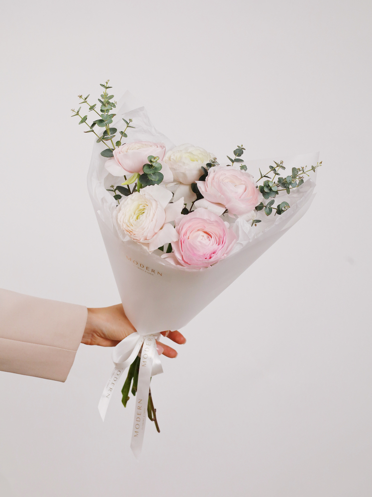 В магазине Modern Flowers & Farm представлен большой выбор букетов с ранункулюсами: